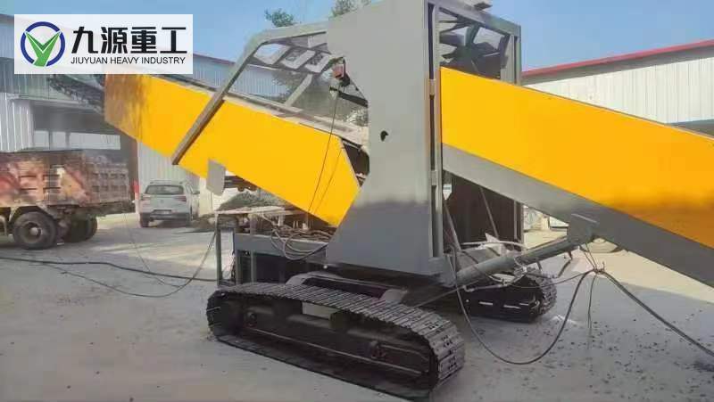 1.大型履帶移動堆取料機可用于礦山碎石料、沙土以及糧食等裝車操作,采用自身發(fā)動機帶動的液壓螺旋系統(tǒng)進料,利用大小皮帶將料裝車,大小皮帶的伸縮旋轉也通過液壓系統(tǒng)控制,同時可控制履帶自行行走,無需外部電源,移動靈活,作業(yè)面積大、效率高;